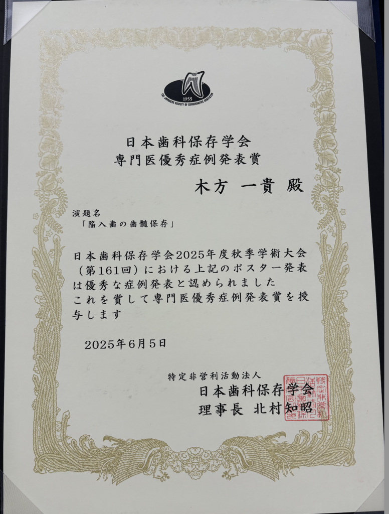 今回、日本歯科保存学会 専門医優秀症例発表賞を受賞できましたので、愛媛で開催された学会の表彰式に参加してきました。